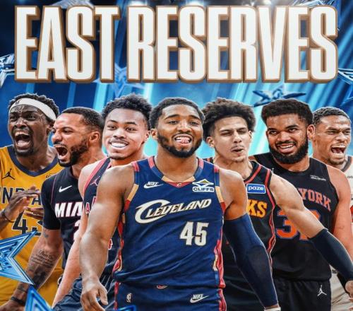 - 替补(7人):米切尔(骑士)、安东尼·唐斯(尼克斯)、杰伦·约翰逊(老鹰)、西亚卡姆(步行者)、诺曼·鲍威尔(热火)、斯科蒂·巴恩斯(猛龙)和杰伦·杜伦(活塞)。