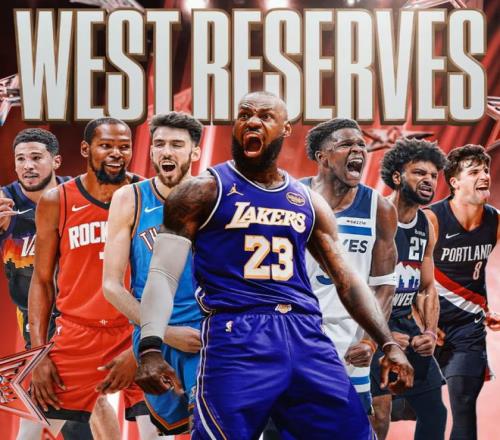 - 替补(7人):詹姆斯(湖人)、杜兰特(火箭)、爱德华兹(森林狼)、德文·布克(太阳)、切特·霍姆格伦(雷霆)、贾马尔·穆雷(掘金)和阿夫迪亚(开拓者)。