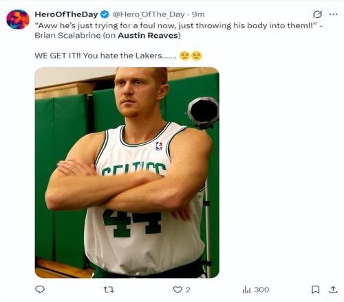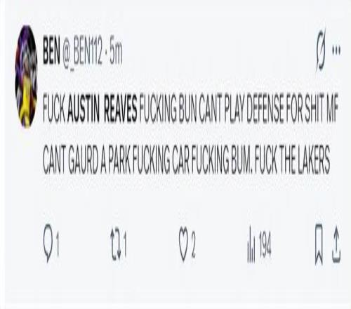 詹黑媒体:哎呀,里夫斯只是在试图碰瓷,他简直是用身体去撞击对方。我只针对里夫斯,我们明白了,你们都讨厌湖人队。