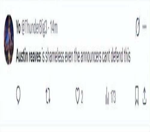 雷霆球迷:里夫斯的造犯规简直无耻至极,就连解说员都无法为他辩解了。