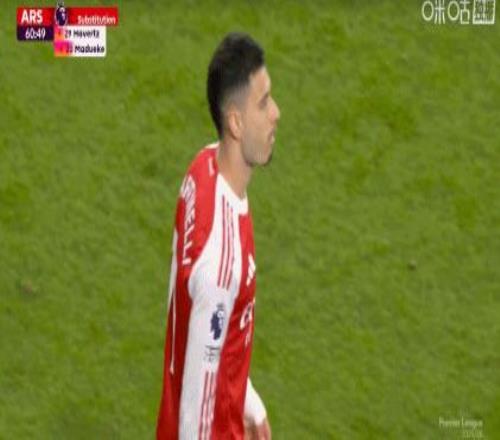 第61分钟,阿森纳连换两人,马丁内利、哲凯赖什替补登场