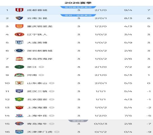 北京时间3月21日,随着第二个比赛日6场比赛顺利进行,2026赛季中超联赛第3轮比赛结束。最新积分榜方面,本轮过后没有球队取得3连胜,前3排名再度发生变化,扣分球队中仍有6队是负分。