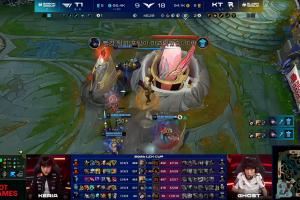 T1在比赛中期陷入超大劣势,一度人头比1:15,最劣势的时候被拉开1w2经济差+水龙魂;但T1凭借更强的运营拉扯,Oner抢下第一条远古龙续命,并顶着第二条远古龙Buff打出奇迹团,耗时46分钟极限翻盘KT!